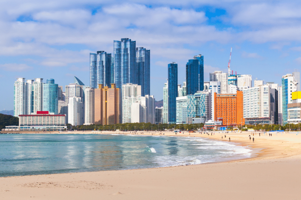 ☐ Haeundae Beach – La plus célèbre plage de Corée du Sud, parfaite pour bronzer ou admirer le coucher du soleil.